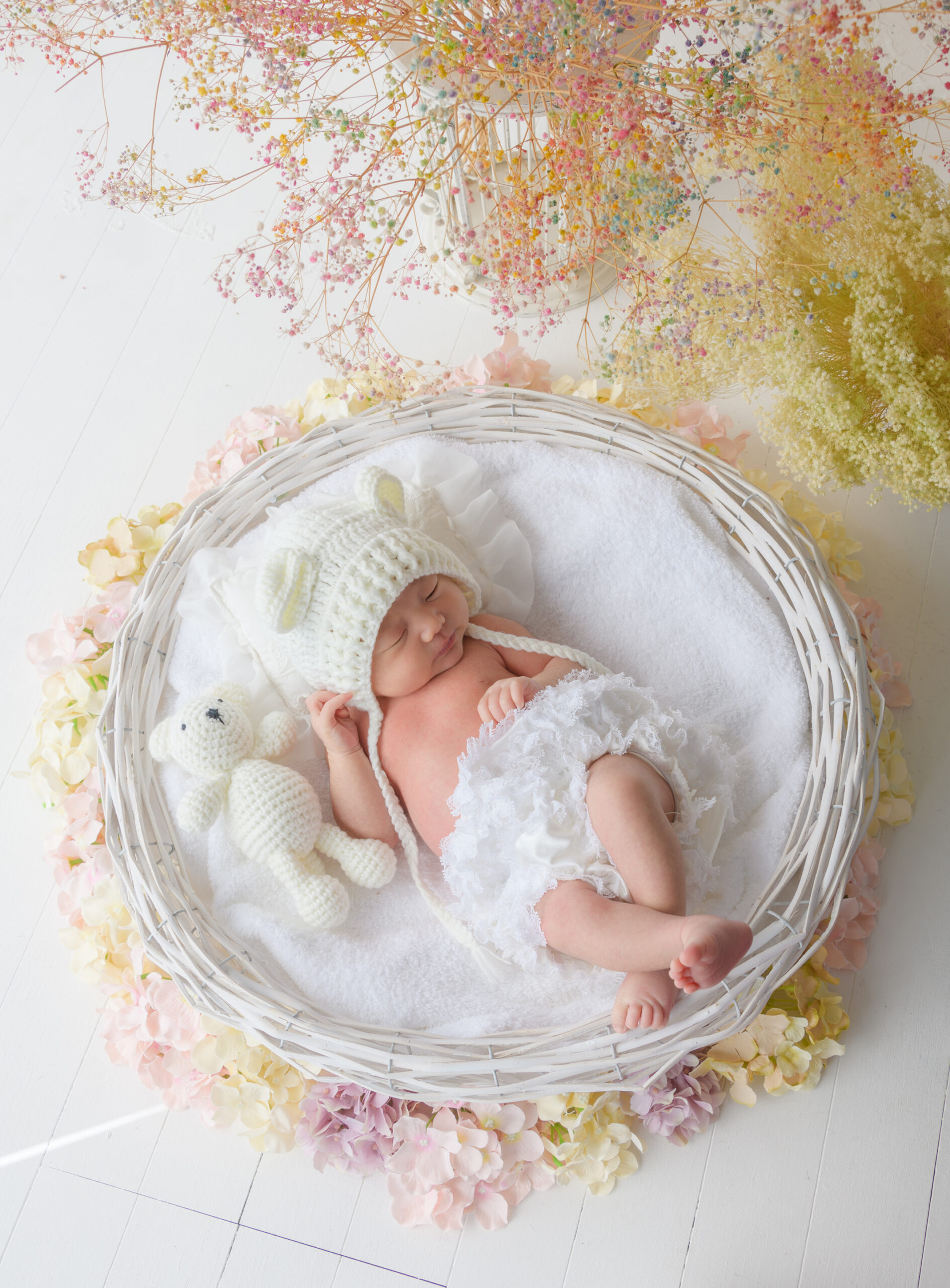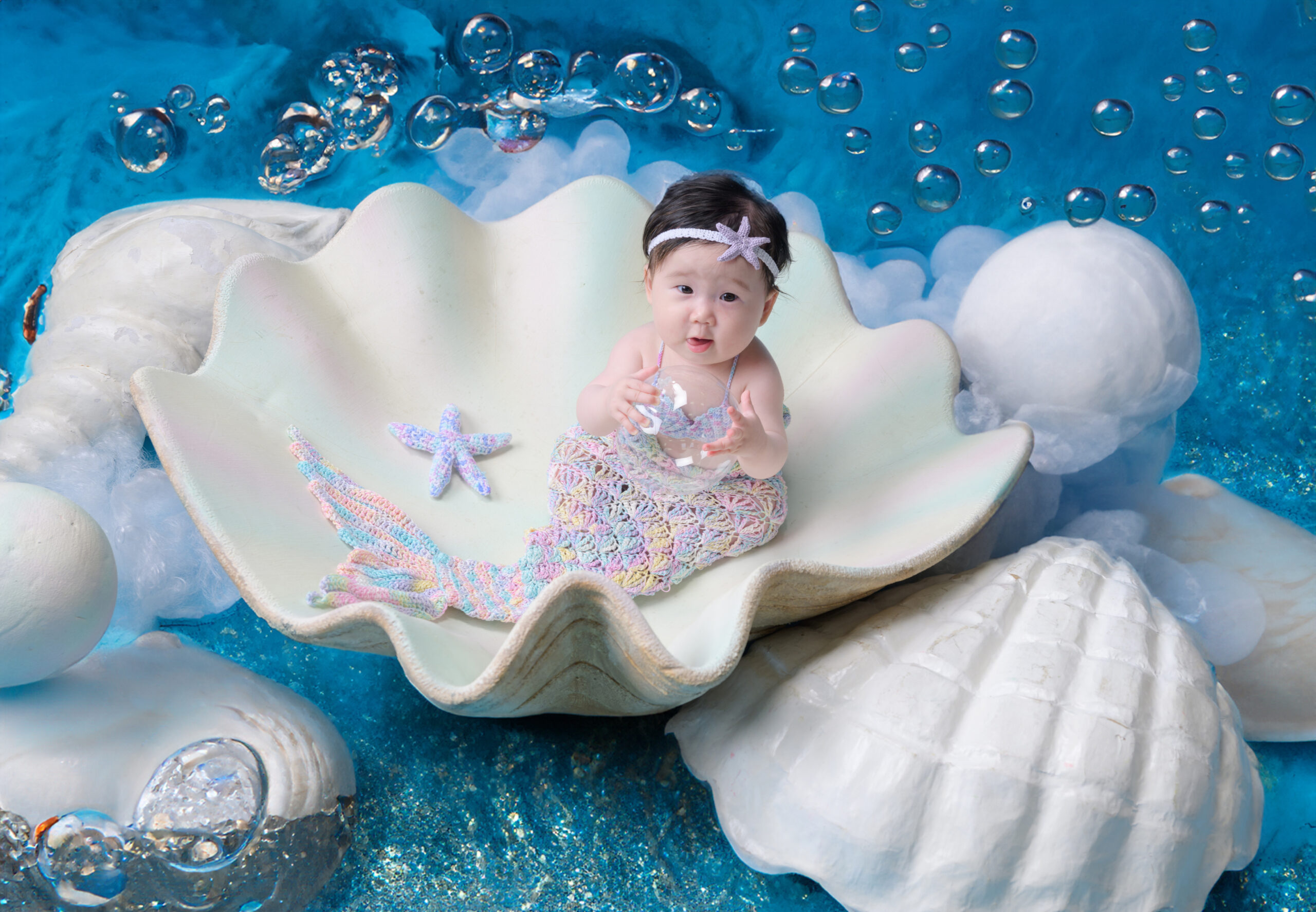 産まれてから色々なしぐさや表情が出てくる4ヶ月からの撮影となっています。お家では撮れない写真を自信を持って撮影します。出来上がった可愛いデザインプリントも大変好評いただいております。